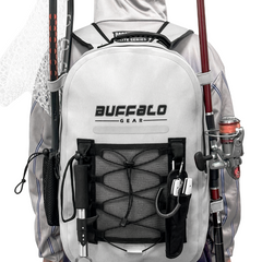 Made of high-strength fiber-reinforced tarp with a double-sided TPU coating, this 26L waterproof fishing backpack keeps your gear dry and protected from rain, splashes, and rough use.
