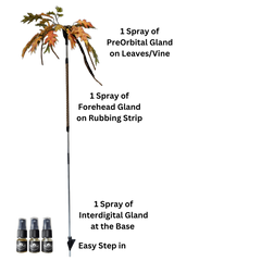BuckStik is a simple to use interactive deer attractant designed to attract dominant bucks and keep them coming back on a regular basis. BuckStik is an all in one licking branch, rubbing post, and mock scrape system that presents the three main glands deer use to communicate (Preorbital, Forehead, and Interdigital) at the ideal height for interaction. BuckStik products are designed to be setup in seconds, hold and retain deer DNA (hair, gland secretions) better than any natural vine/branch as they interact, easily be moved from place to place, and do not need to be restarted from scratch as deer work them.