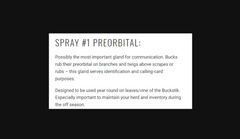 Deer use their sense of smell as their primary communication method with other deer. These scents come from 3 primary glands: Preorbital, forehead, and interdigital. Buckstik has developed a line of all three glands that are 100% pure and 100% natural. Processed in a laboratory setting to ensure purity and consistency these highly coveted glands have an unlimited shelf life, low evaporation rate, and unlike urines have no usage restrictions. A VERY powerful attractant, just one or two sprays are all that are needed to bring in dominant bucks.