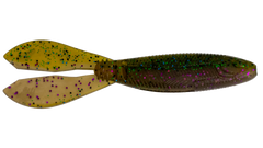 A soft bait designed to work as a vibrating jig trailer. The body has a slender, realistic bait fish profile with nice detail and smooth swim. The bait puts lots of action out of the tail on a slow or fast retrieve.